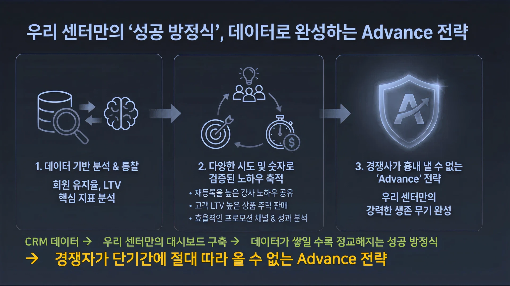 ADVANCE (격차 형성): 축적된 데이터를 바탕으로 경쟁사가 따라올 수 없는 우리 센터만의 성공 방정식