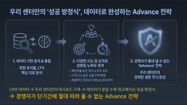 이것이 바로 경쟁자는 단 기간에 절대 흉내 낼 수 없는, 우리 센터만의 'Advance' 전략이 되는 것입니다.