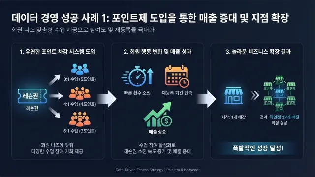 이 결과 이미 충전한 포인트를 회원들이 아끼지 않고 빠르게 사용했고, 재등록 기간은 매우 단축이 되었고 이는 빠른 매출 상승 효과로 나타났습니다.