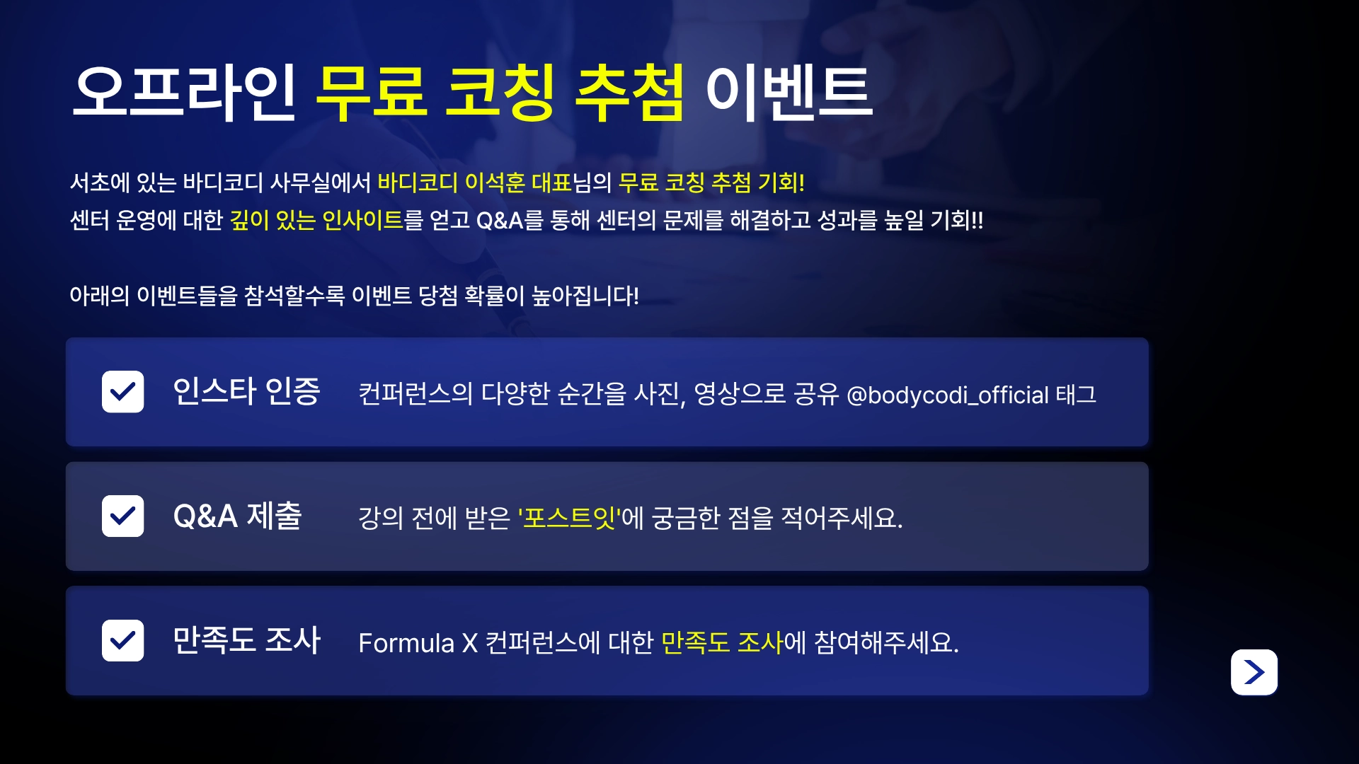 센터운영에서 느끼는 문제를 개선하고 싶고, 적극적으로 도움을 구하고자 하는 대표님, 관리자분들을 최대한 초대드리고 무료 코칭을 진행하려 합니다.