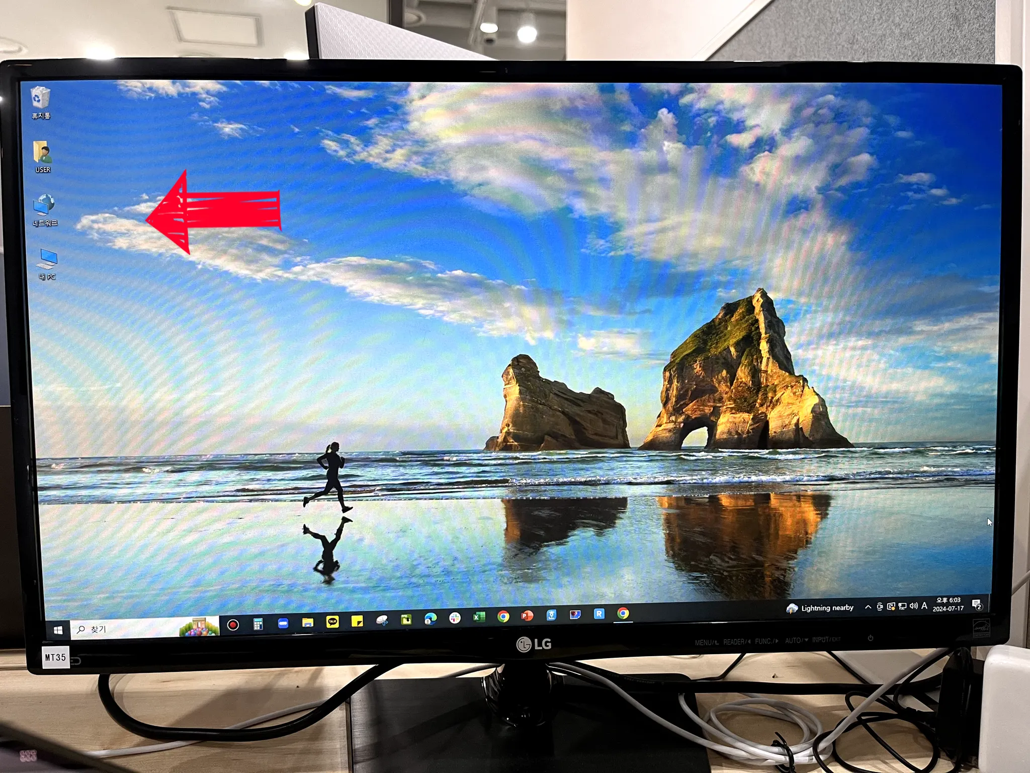 바디코디 아이콘이 없는 바탕화면이 나오도록 모니터 화면을 촬영해주세요.