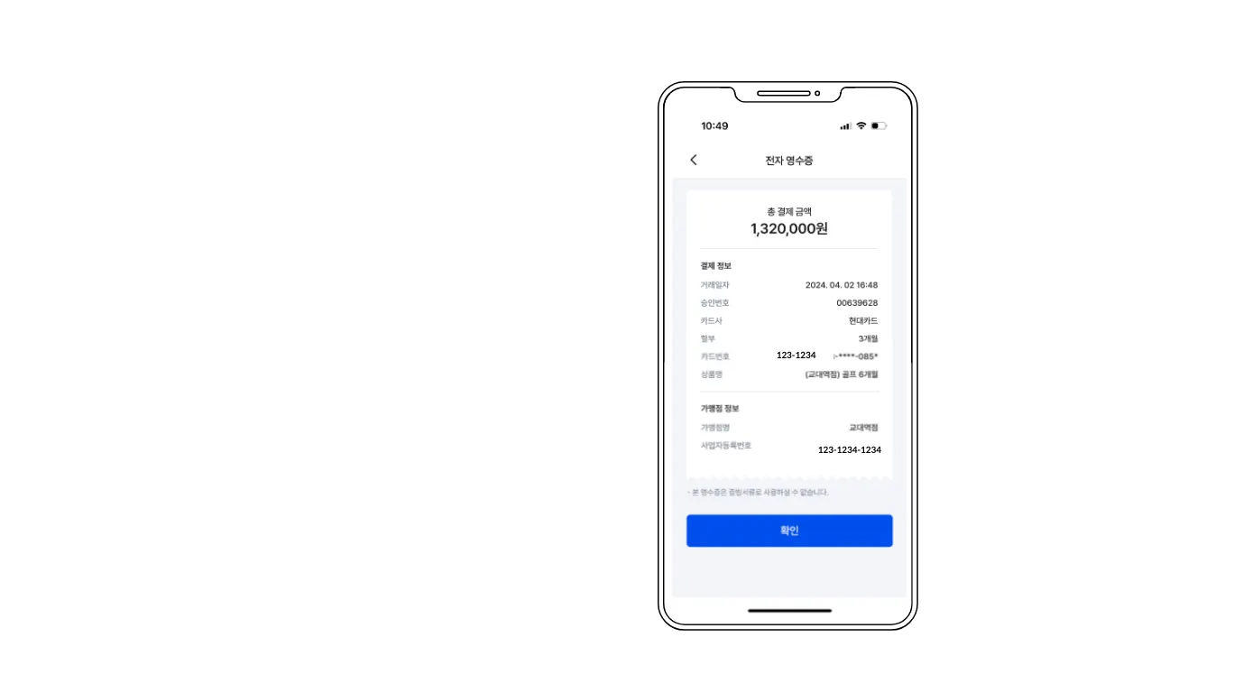전자영수증을 회원앱에 쓰윽 넣어드려요!