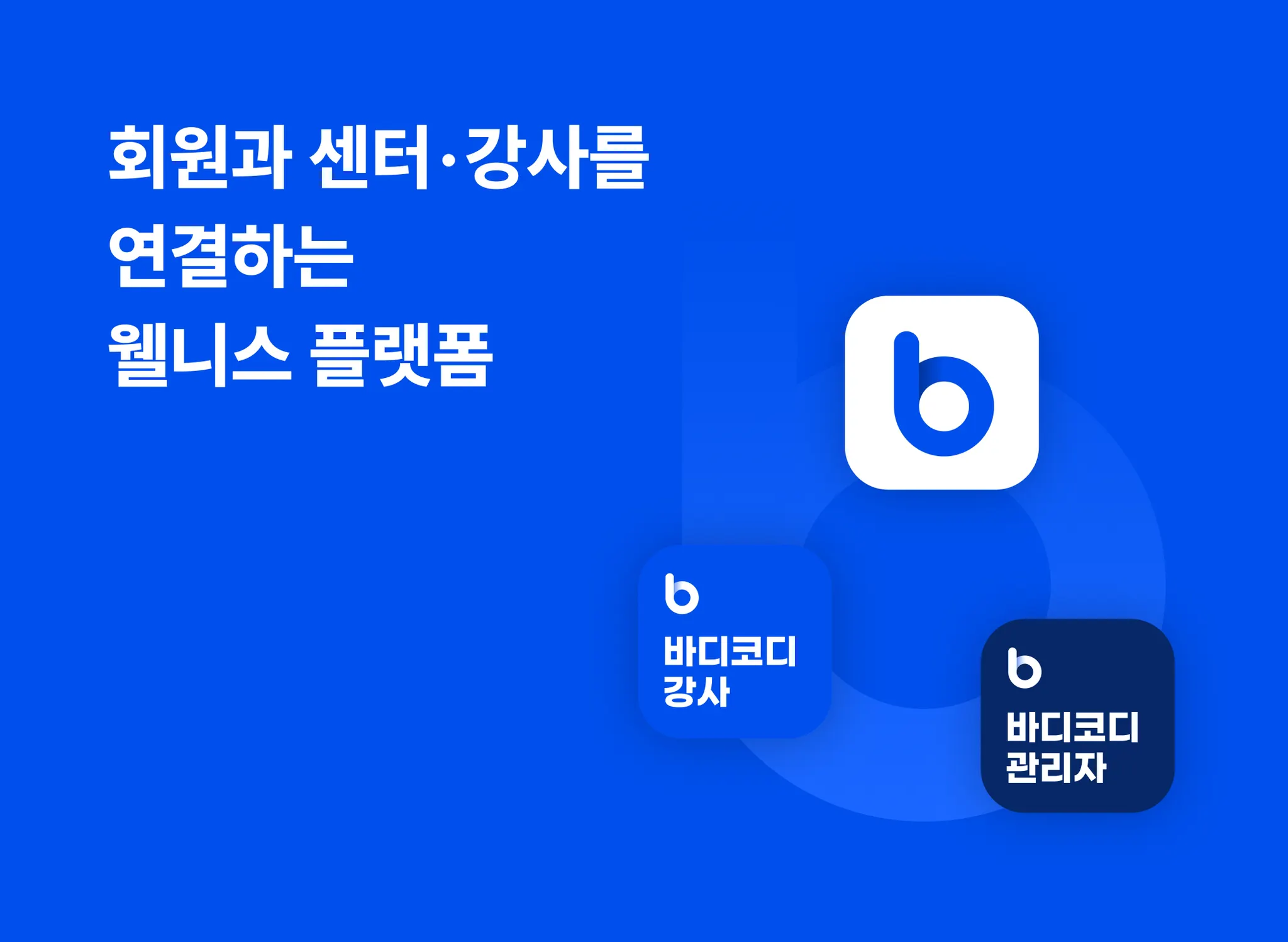 바디코디는 모바일 예약과 결제, 스케줄 관리, 고객 관리와 임직원 관리 등 피트니스 센터 운영에 필요한 통합 운영 및 관리 서비스와 함께 모바일 앱을 통해 회원 서비스를 강화하고 매출 성장을 지원해요. 비브라더, 에이블짐, 센트리얼 필라테스, 카카오 VX, 모던 필라테스 등 대한민국의 대표 피트니스 · 필라테스 브랜드와 함께하고 있어요.