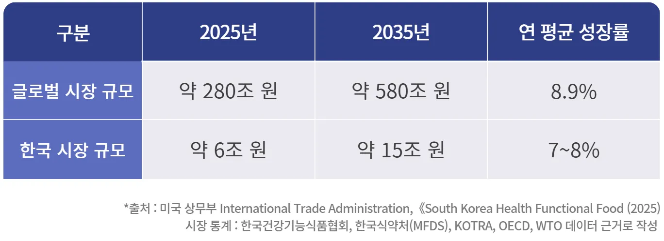 국내외 여러 기관에서는 한국 건강기능식품 시장의 성장 가능성을 높게 평가하고 있습니다.