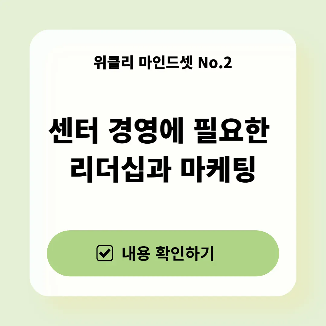 센터 대표님들과 관리자들이 지치고 힘든 순간에도 다시 명확하게 비전을 느끼고 힘을 낼 수 있도록 함께 할 것입니다. 쭉쭉 성장하는 시기에도 놓치기 쉬운 인사이트를 제공해서 리스크를 줄이고 탄탄하게 지속적으로 성장할 수 있도록 도움이 될 것 입니다.